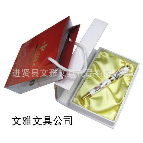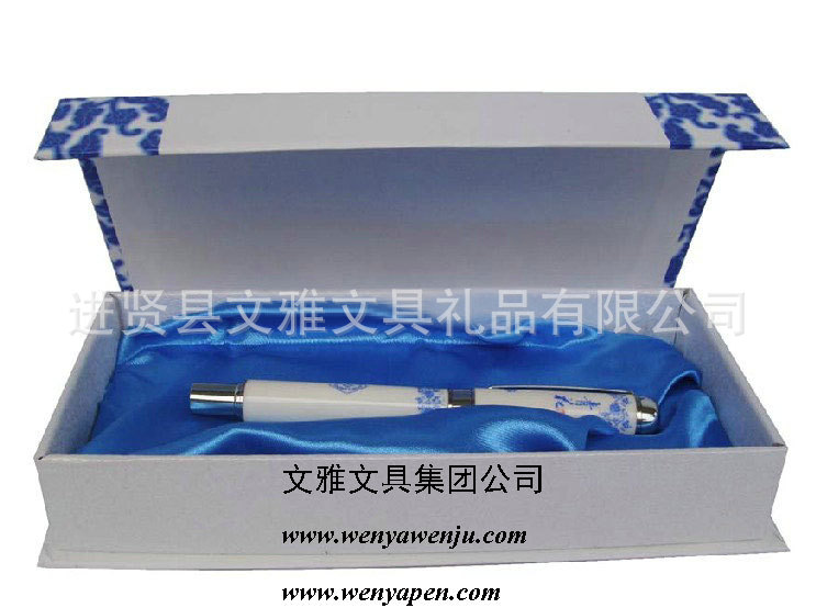 文雅文具青花瓷筆、工藝筆、陶瓷筆、簽字筆、禮品筆、鋼筆 文雅文具青花瓷筆:是純陶瓷燒制的筆。分鋼筆和簽字筆,“中國(guó)風(fēng)”已成為世界的一種時(shí)尚。白釉青花一火成,花從釉里透分明??蓞⒃旎忍烀睿瑹o(wú)極由來(lái)太極生。文雅筆業(yè)遍訪國(guó)內(nèi)知名的瓷窯,遵循古法,經(jīng)過(guò)素?zé)⑸嫌浴⒂詿?0道工序,三進(jìn)三出瓷窯以1200度的高溫為您燒制出世界首款陶瓷系列禮品----筆身晶瑩剔透,手感潤(rùn)滑,此款筆生產(chǎn)的難度系數(shù)極高,因?yàn)楣P身的陶瓷厚度為1.3毫米,筆身和陶瓷筆桿的誤差為0.05毫米,燒制溫度為高溫1200度,陶瓷筆管從做模,到貼花出成品時(shí)間為10道工序,出成品后經(jīng)過(guò)嚴(yán)格篩選,一般要淘汰一半多不合格的,選出來(lái)的可謂百里挑一,由于市場(chǎng)上無(wú)此類產(chǎn)品,青花瓷筆的問(wèn)世,將是禮品市場(chǎng)的大熱門(mén)。
