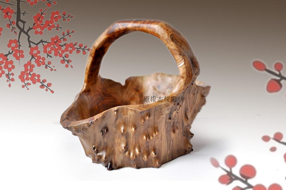 手提實(shí)木根雕花籃 瘤根雕杯洗果盆籃 木質(zhì)茶具館家居飾品擺設(shè)禮品