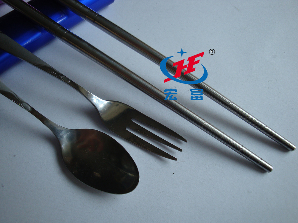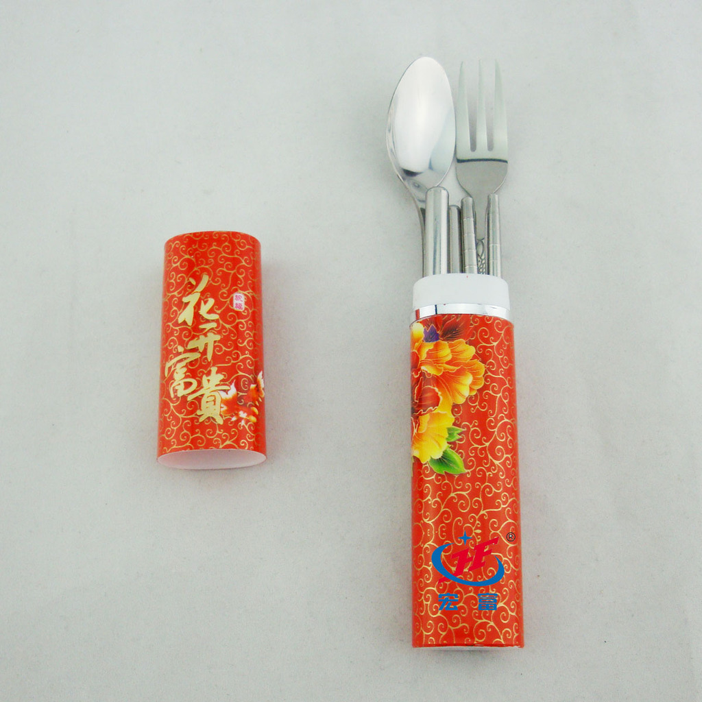 不銹鋼便攜式旅游筆筒餐具三件套/鋁盒塑料盒折疊筷子湯匙叉套裝