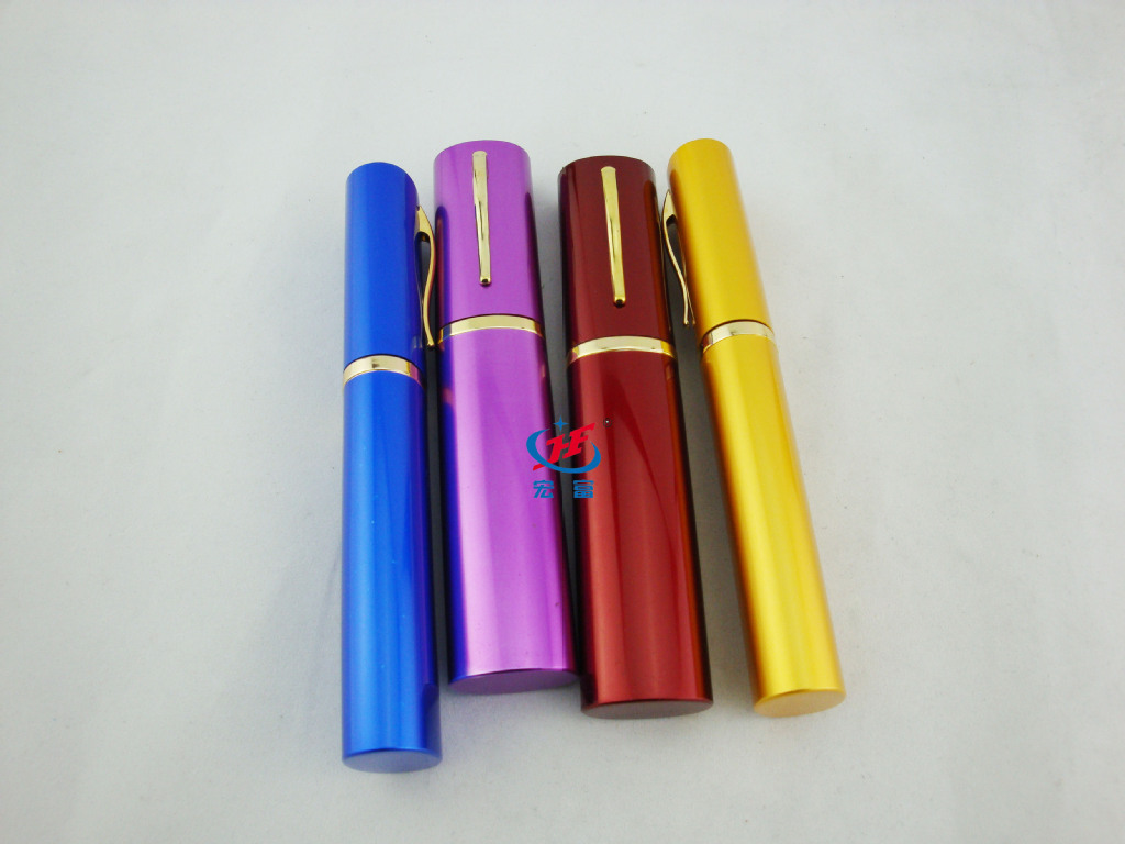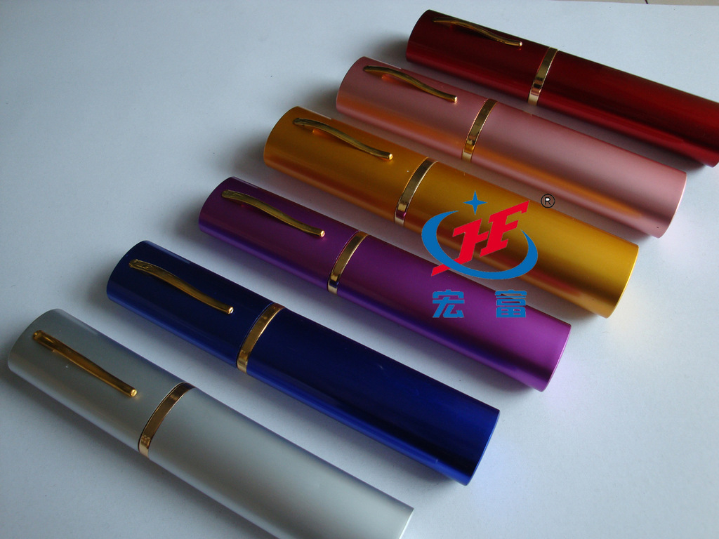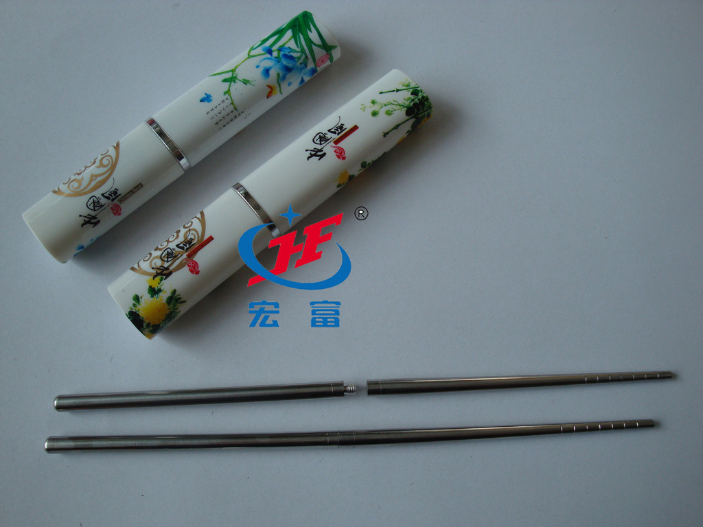 筷子為兩段式設(shè)計(jì),以螺絲擰接。橢圓形高級(jí)鋁氧化筆式盒包裝,便于攜帶。