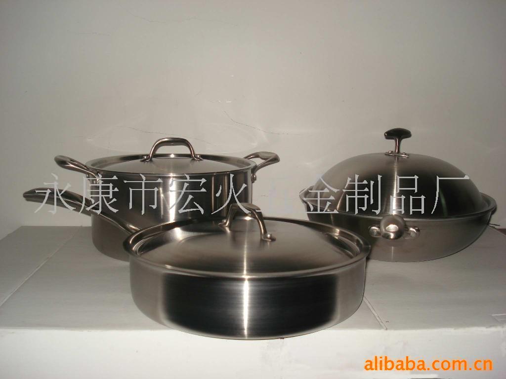 高級復(fù)合三層不銹鋼炒鍋。煎鍋。湯鍋。奶鍋(圖)