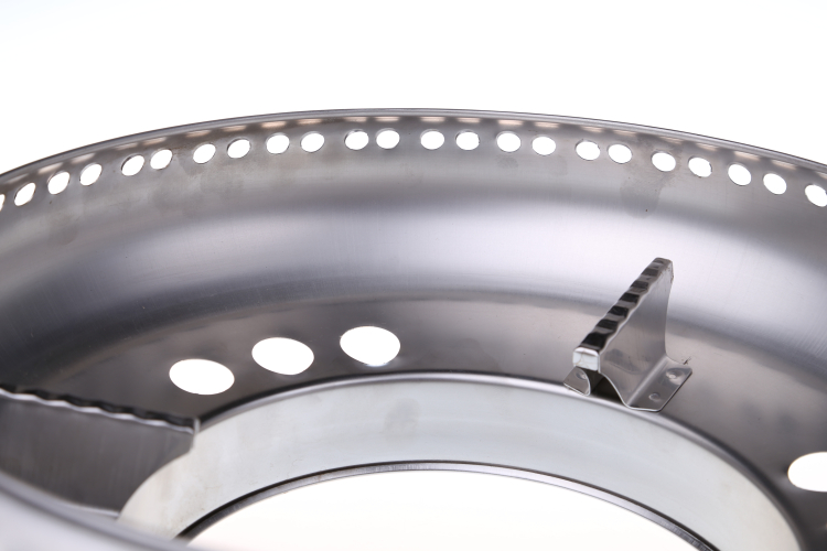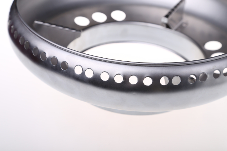 采用鼓型設(shè)計(jì),底部有9個(gè)進(jìn)氣圓孔,上端口有72個(gè)出氣圓孔,把下面每個(gè)圓孔的進(jìn)氣都分成八份,從端口有出氣圓孔排除,從而產(chǎn)生一種煙道式進(jìn)排原理的效果。