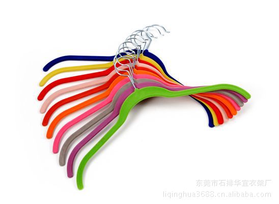 供應(yīng)優(yōu)質(zhì)普通男裝塑膠植絨防滑衣架 五金勾