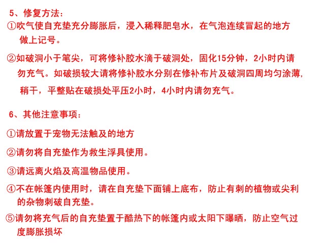 配件:修補(bǔ)包(以備意外墊子破損時(shí)可修補(bǔ))