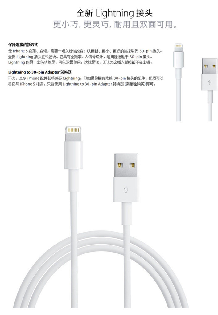 蘋果iPhone5專用數(shù)據(jù)線,讓用戶可以通過USB 2.0實(shí)現(xiàn)數(shù)據(jù)同步*充電同步