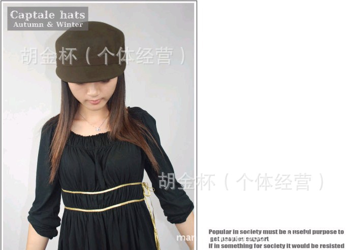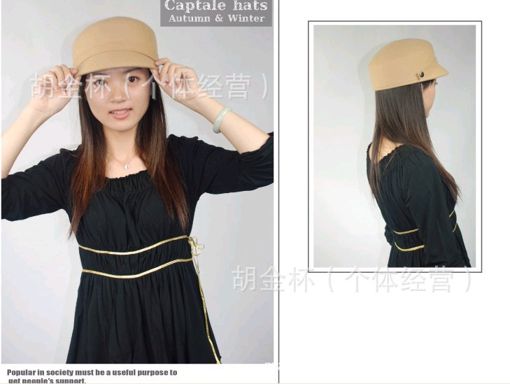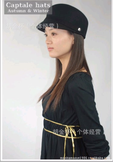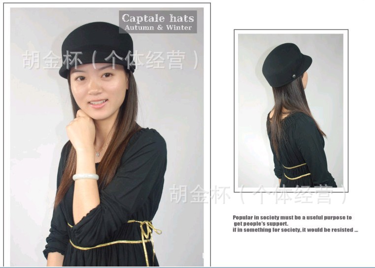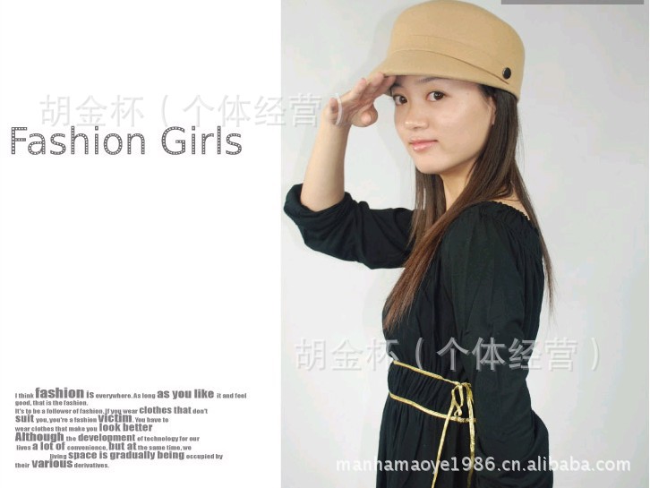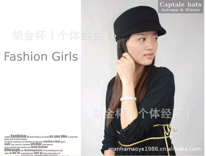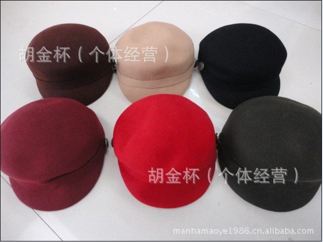 『曼哈帽業(yè)』廠家直銷高檔純羊毛女士軍帽氈帽秋冬呢帽子