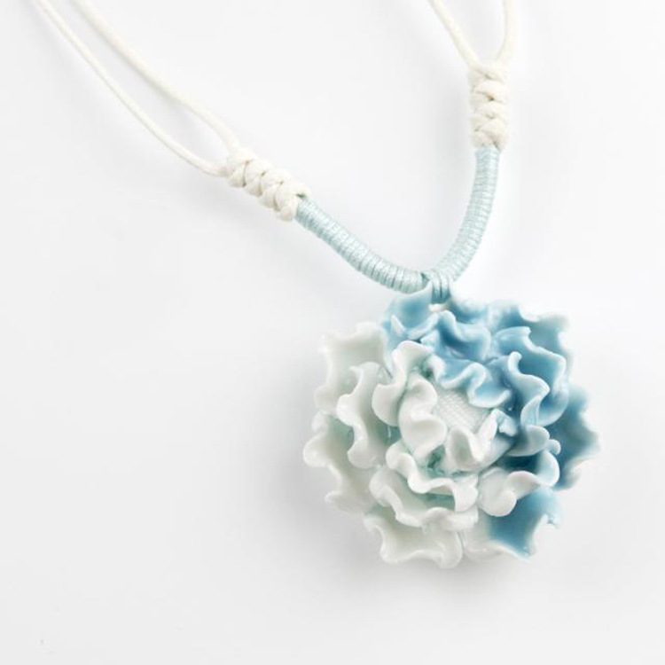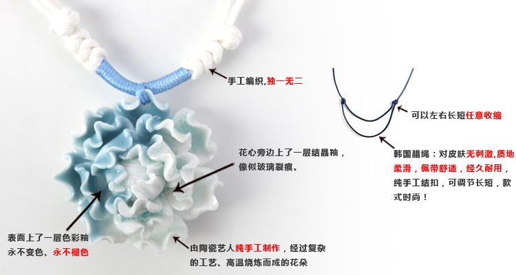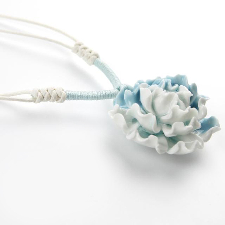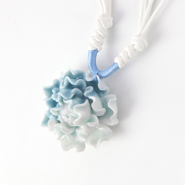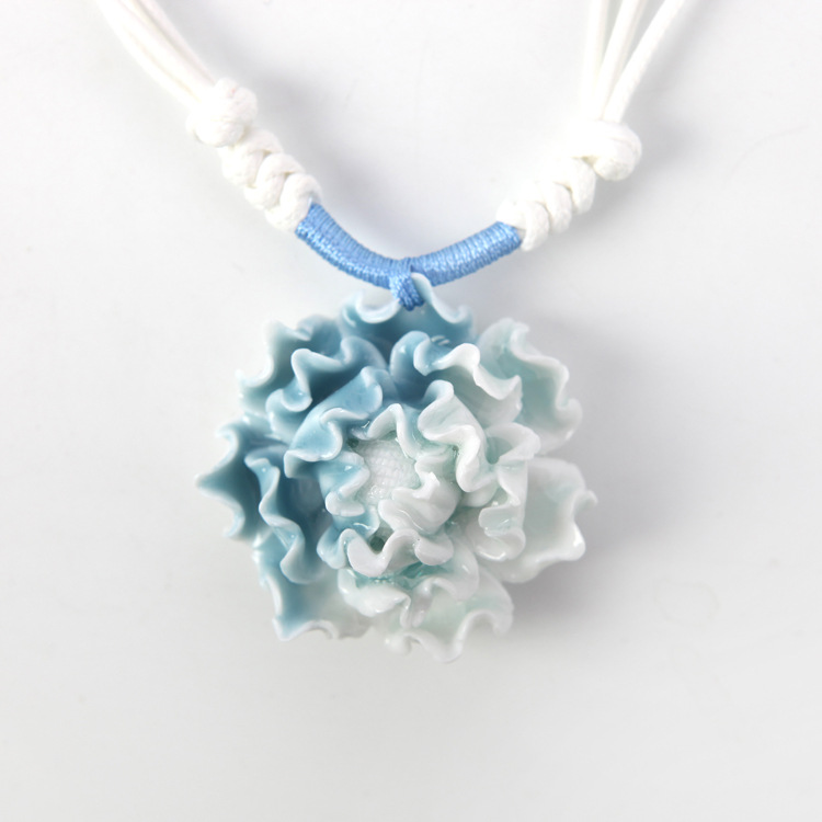中國風(fēng)陶瓷飾品批發(fā) 優(yōu)雅古典 手工制作陶瓷項(xiàng)鏈 女生 藍(lán)白牡丹