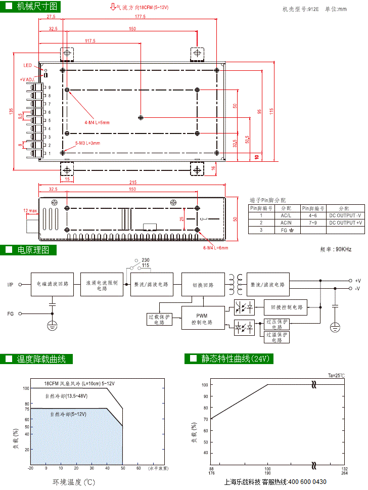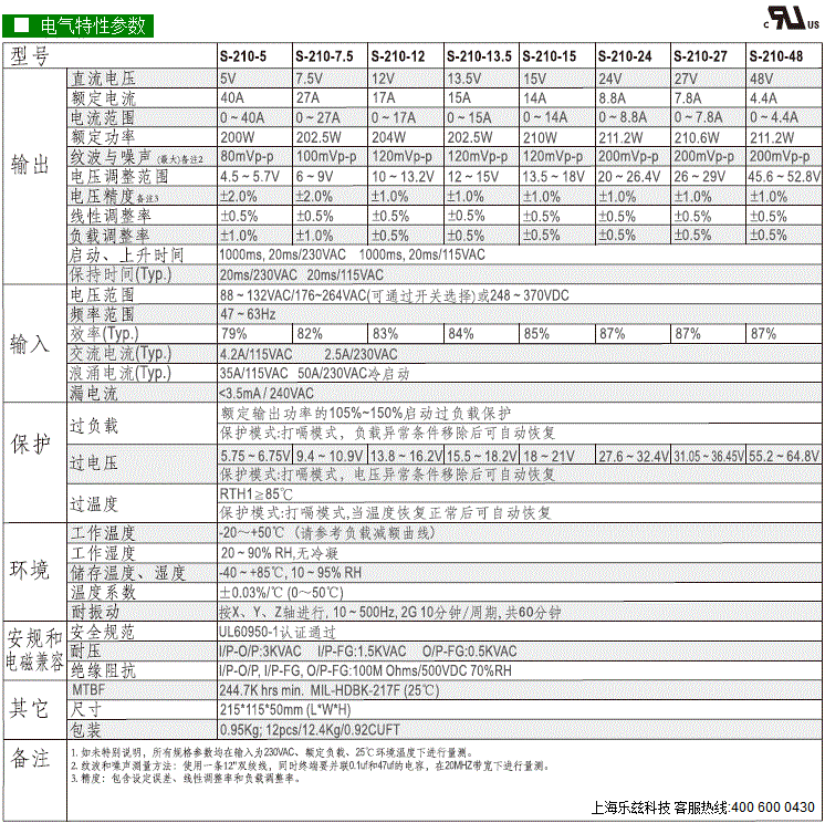 ■ 主要特點開關(guān)選擇交流輸入電壓范圍有短路保護/過載保護/過電壓保護/過熱保護國際安規(guī)認證UL/CUL上海樂茲科技,客服熱線400 600 0430自然通風(fēng)冷卻90KHz固定開關(guān)頻率100%滿載老化測試LED指示電源工作狀態(tài)采用無鉛制程,符合環(huán)保RoHS要求臺灣明緯品牌,蘇州工廠生產(chǎn)2年質(zhì)保 ■ 主要參數(shù)直流輸出范圍5V,0~40.0A輸出電壓精度±2%紋波80mV效率79%輸入電壓范圍由開關(guān)選擇88~132VAC/ 176~264VAC/或 248~370VDC輸入浪涌電流冷啟動,115V時為35A/230V時為50A電壓調(diào)整范圍額定輸出電壓的±10%過載保護過電流點在105%~150%時斷開,自動偵測自動復(fù)原過電壓保護額定輸出電壓的115%~145%時動作,自動偵測自動復(fù)原啟動,上升時間230VAC滿載時100ms,50ms企業(yè)QQ號400-600-0430絕緣特性輸入端與輸出端間: 3KVac,輸入端與外殼間: 1.5KVac, 輸出端與外殼間: 0.5KVac,1分鐘工作溫度-20~ 50℃(參考溫度降載曲線)抗震動性10~500Hz,2G 10分鐘/ 周期, XYZ各軸各60分鐘安規(guī)認證通過UL60950-1認證平均無故障時間≥24.47萬小時, MIL-HDBK-217F(25℃)接線方式9P/9.5mm端子排外形尺寸215×115×50mm (長×寬×高)機殼號912E重量及包裝0.95公斤/只; 每箱12只/ 12.4公斤/ 0.026立方米