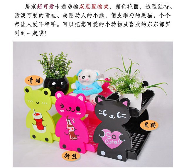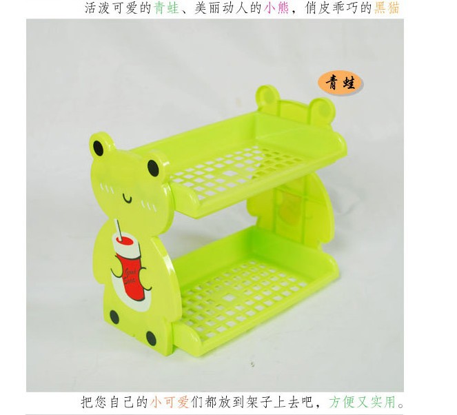 一款卡通的置物架,有兩層!不管是放在浴室還是其他地方都非常的實(shí)用方便!也可以做為收納架,讓你的地盤整整齊齊,舒舒服服!卡通造型,實(shí)用又可愛,也可以做為裝飾品使用,送朋友也是不錯(cuò)的選擇喲!色澤靚麗,新穎,時(shí)尚??烧郫B,可脫卸,是收納各種雜物,雜志的好幫手。放在書桌、電腦桌上、 給房間增添幾分童趣。