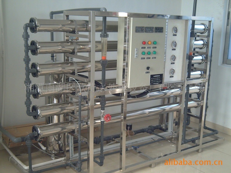 反滲透系統(tǒng)是整個純凈水系統(tǒng)的核心部件,只有通過反滲透才能達(dá)到純凈水的標(biāo)準(zhǔn)。反滲透系統(tǒng)主要采用膜過濾工藝。然后水分子可以通過反滲透膜。其他一些如鈣、鎂、鈉等離子隨廢水一起排掉。下面本系統(tǒng)的組成部件。
