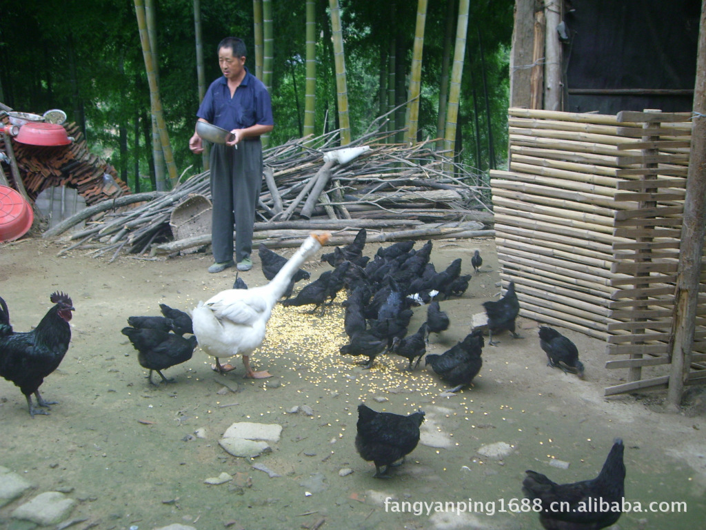 自家養(yǎng)的純種高山黑毛烏骨雞是放養(yǎng)在安吉龍王山海拔1200米的白茶園里。每天喂一次顆粒玉米,主要是以白茶園里的蟲草為食。此雞養(yǎng)殖400天出欄。其肉鮮嫩而有彈性,是真正的原生態(tài)雞。