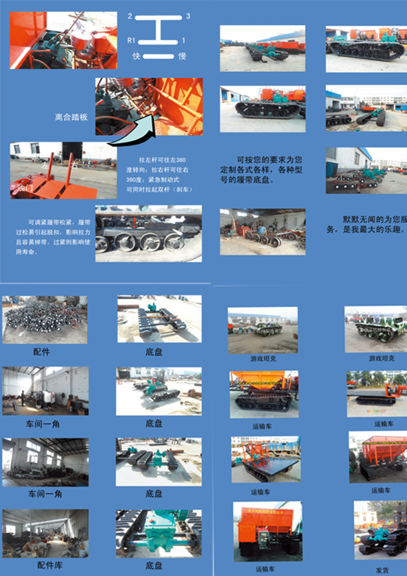 我們有廠和實(shí)體店鋪,從1998年到現(xiàn)在已有15個年頭了,我們主要是生產(chǎn)與批發(fā)各種履帶式收割機(jī)配件,同時生產(chǎn)履帶底盤,也可按客戶要求定做各種履帶式底盤,本廠產(chǎn)品銷往全國各地乃至全亞洲。