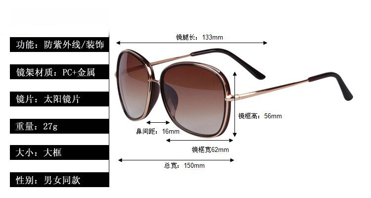 【廠家熱銷】批發(fā)女士修臉顯瘦金屬包邊太陽鏡 時尚潮流酷墨鏡