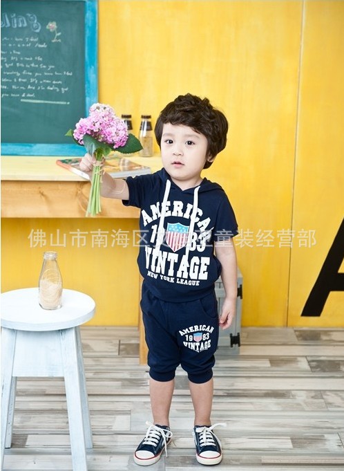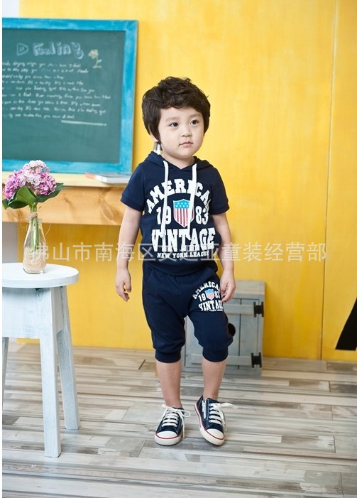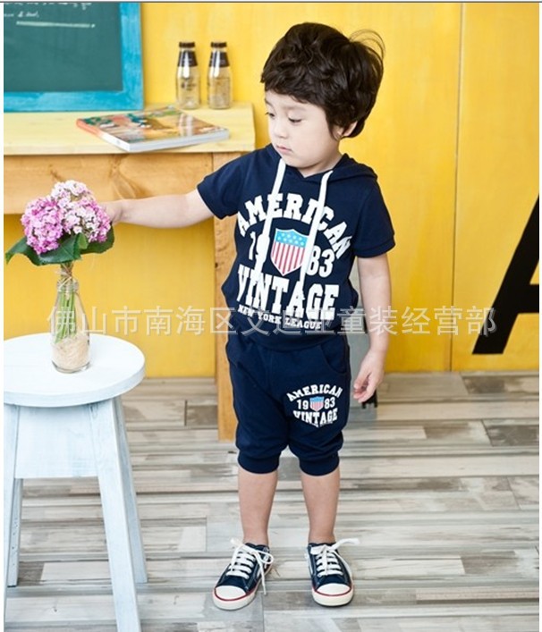 春款夏款韓版男童裝 1983經(jīng)典數(shù)字運動短袖套裝 短袖+中褲