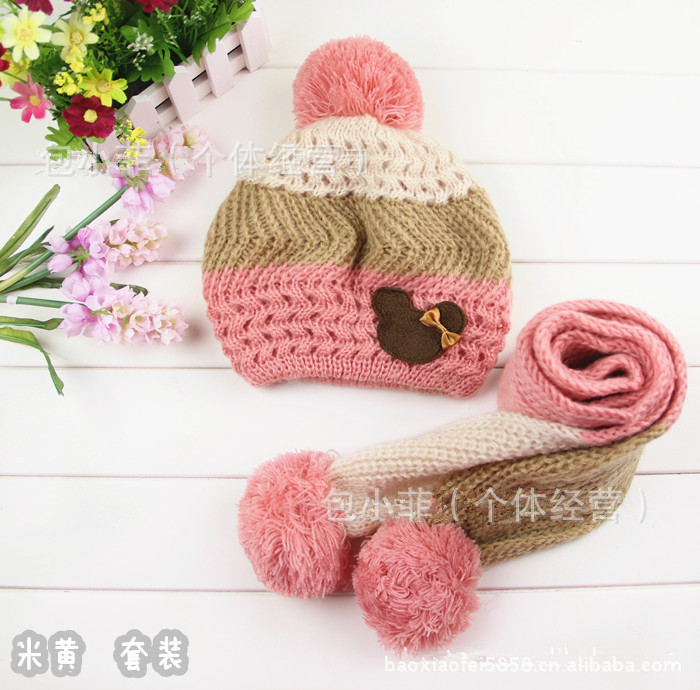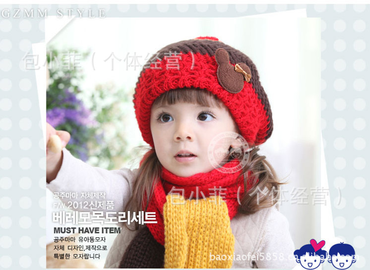 MZ794韓版帽 公主媽媽米奇貝雷帽 秋冬帽圍脖針織帽圍巾套裝 批發(fā)