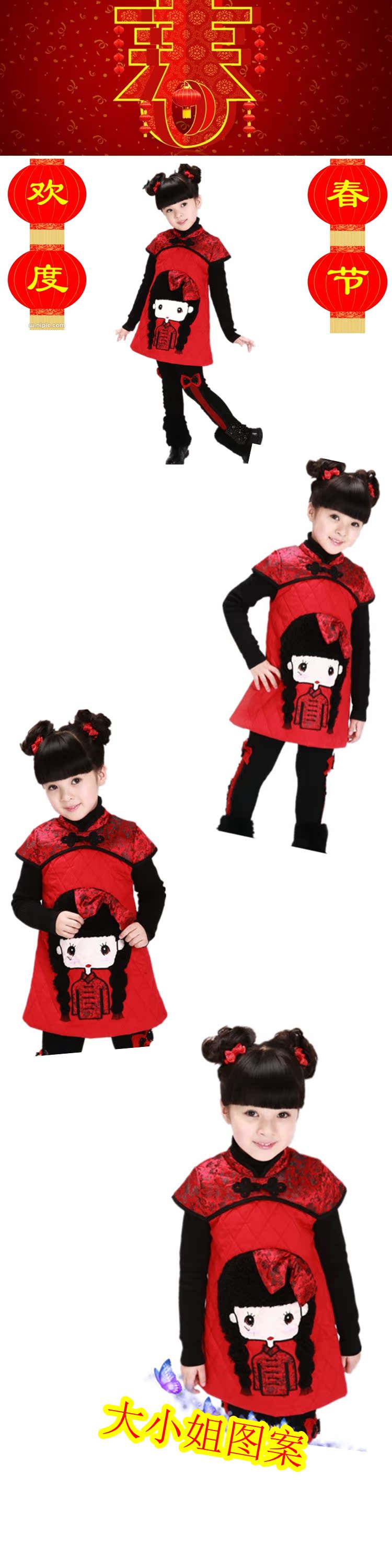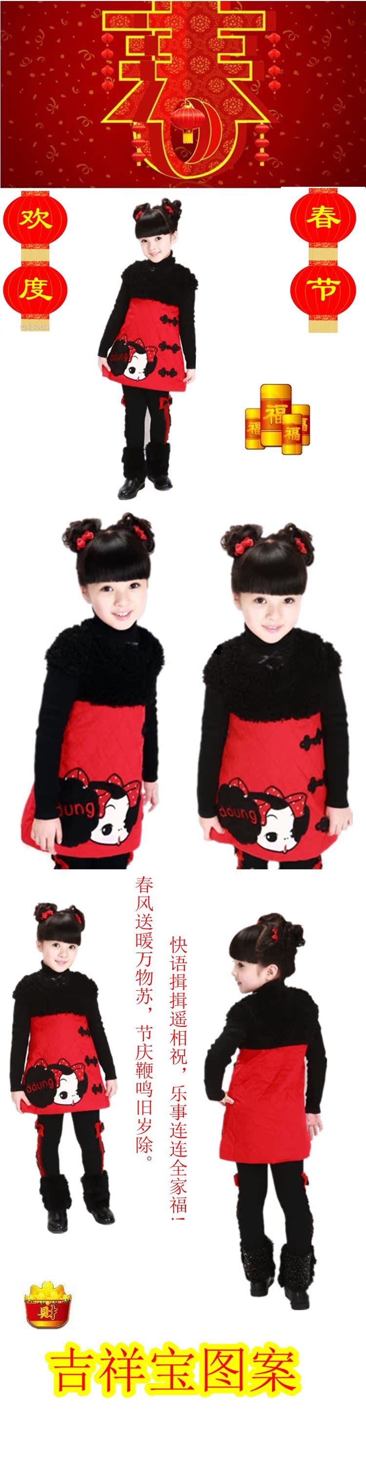 童裝女童2012冬新款精美年裝演出服夾棉棉衣裙兒童旗袍中國(guó)紅唐裝