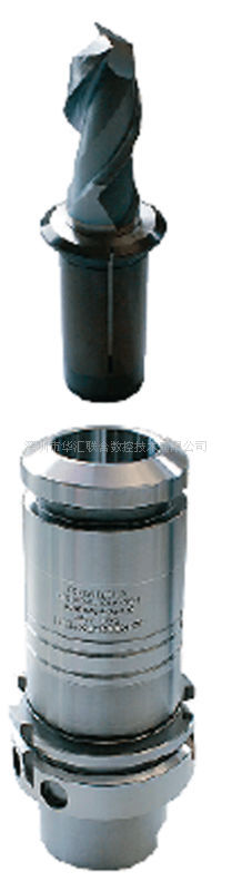 該系統(tǒng)由刀柄、夾緊套和液壓裝置組成。夾緊套的外圓有一個(gè)很小的錐度,把刀具裝入夾緊套后,借助液壓裝置將夾緊套壓入刀柄,夾緊刀具。卸刀時(shí)也需要使用液壓裝置取出夾緊套。裝卸刀具的時(shí)間不超過(guò)10秒鐘。夾緊套內(nèi)有一個(gè)調(diào)節(jié)刀具長(zhǎng)度的螺釘。