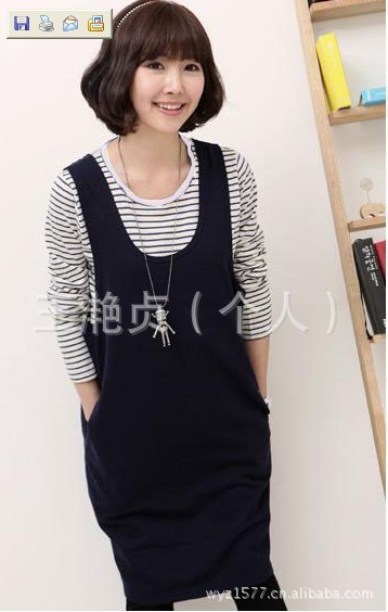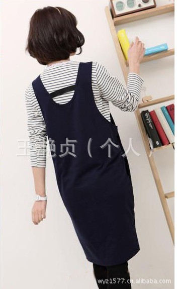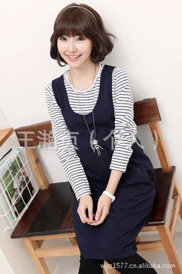 顏色:黑白條打底衫 藏藍(lán)背心裙(如圖)