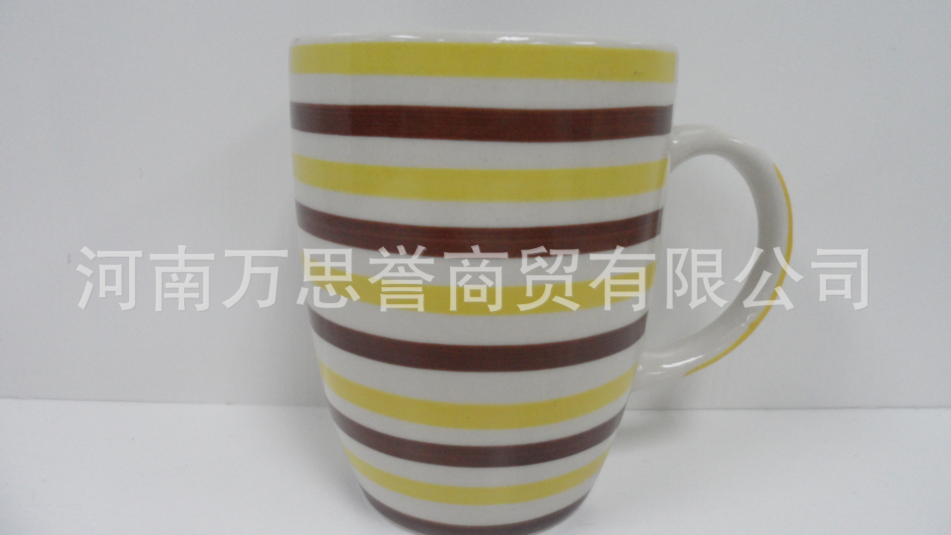 品名:外貿(mào)原單 12盎司彩色條紋陶瓷手繪杯子 咖啡杯 牛奶杯早餐杯