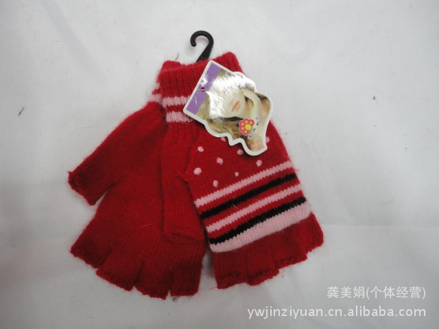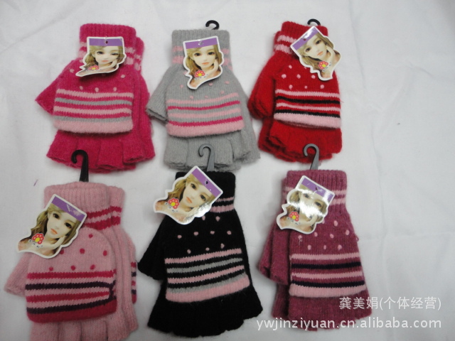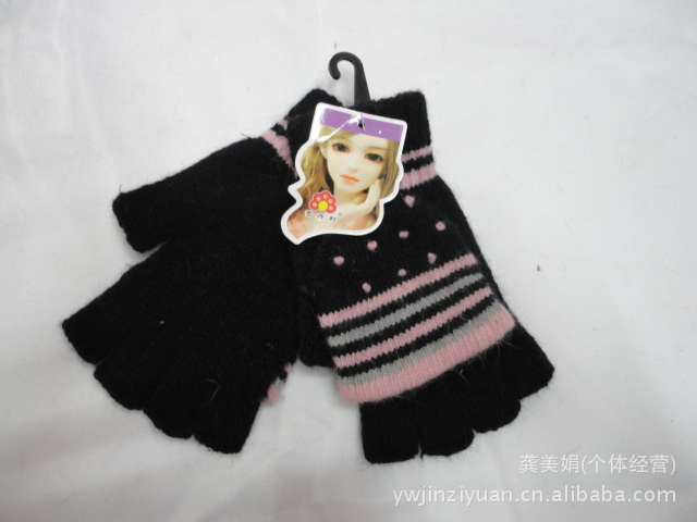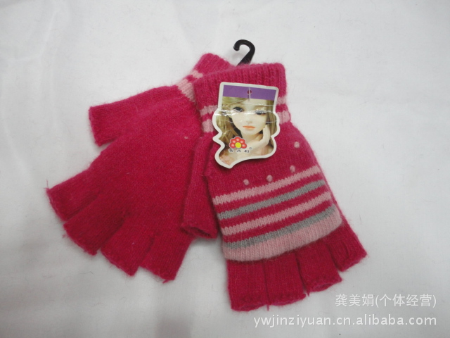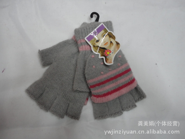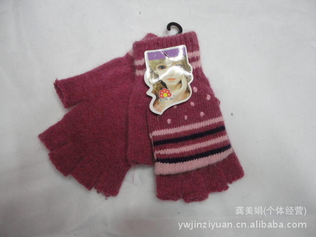 韓版時(shí)尚兔毛提花半指翻蓋手套 針織手套 魔術(shù)手套