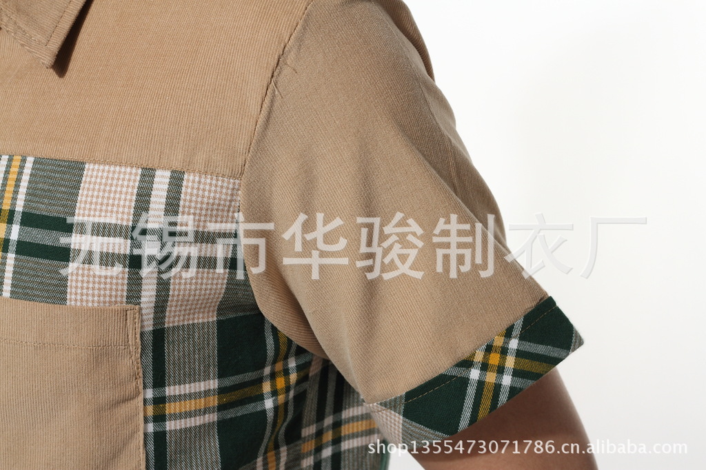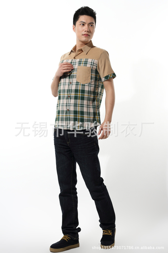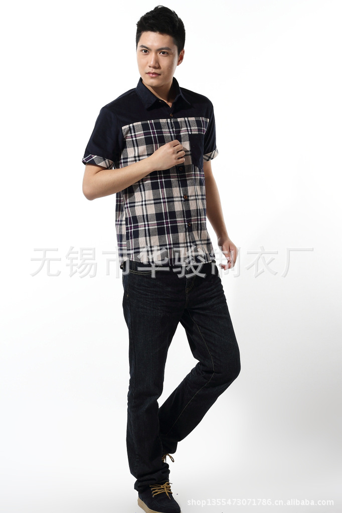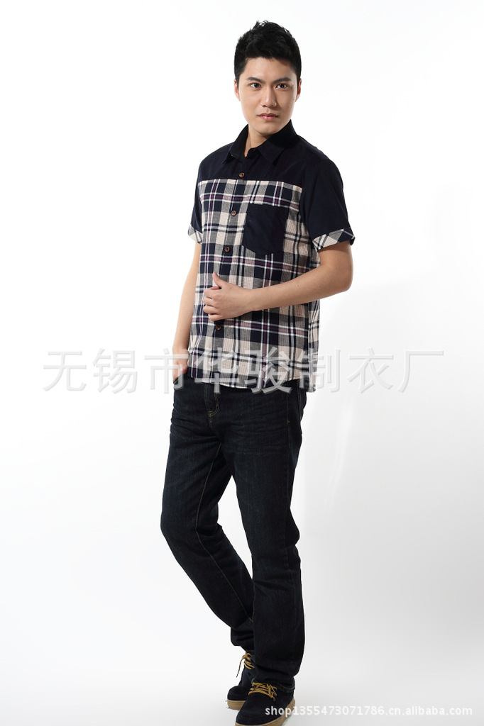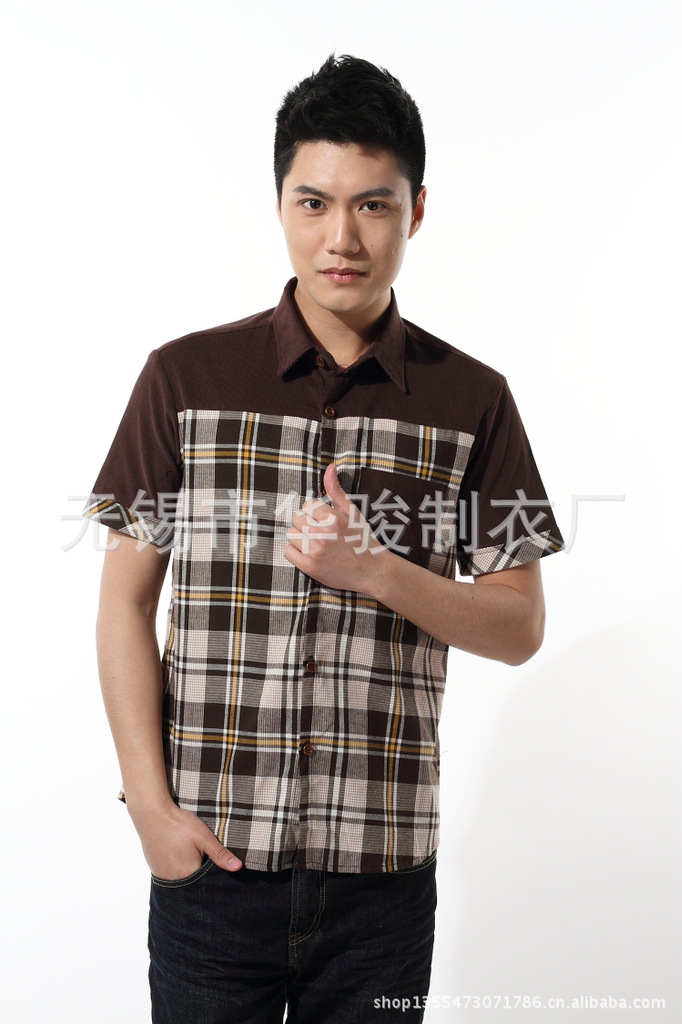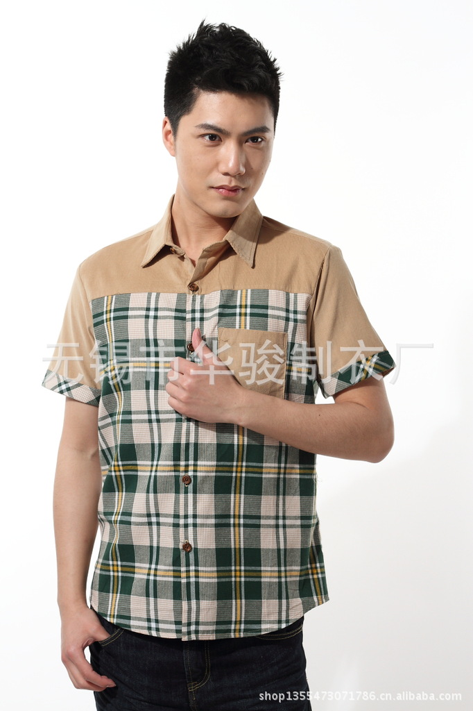 2013精品夏季男裝燈芯絨襯衫男短袖男士格子襯衫韓版修身襯衣