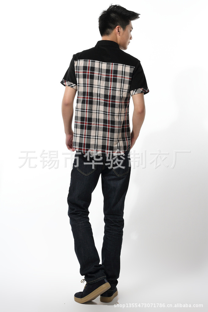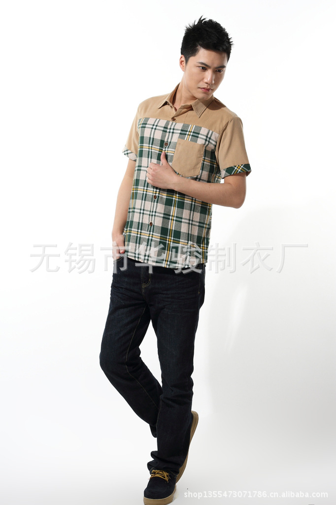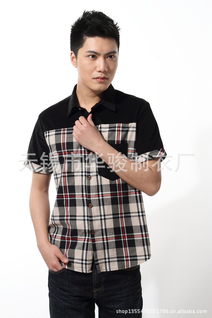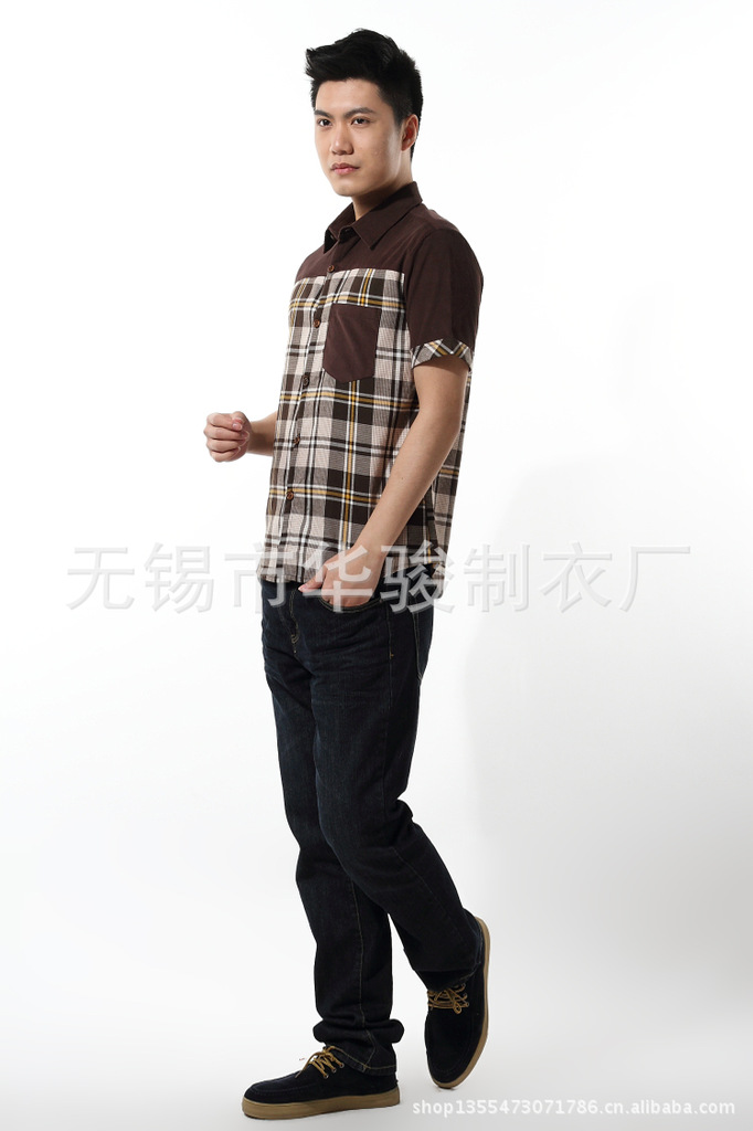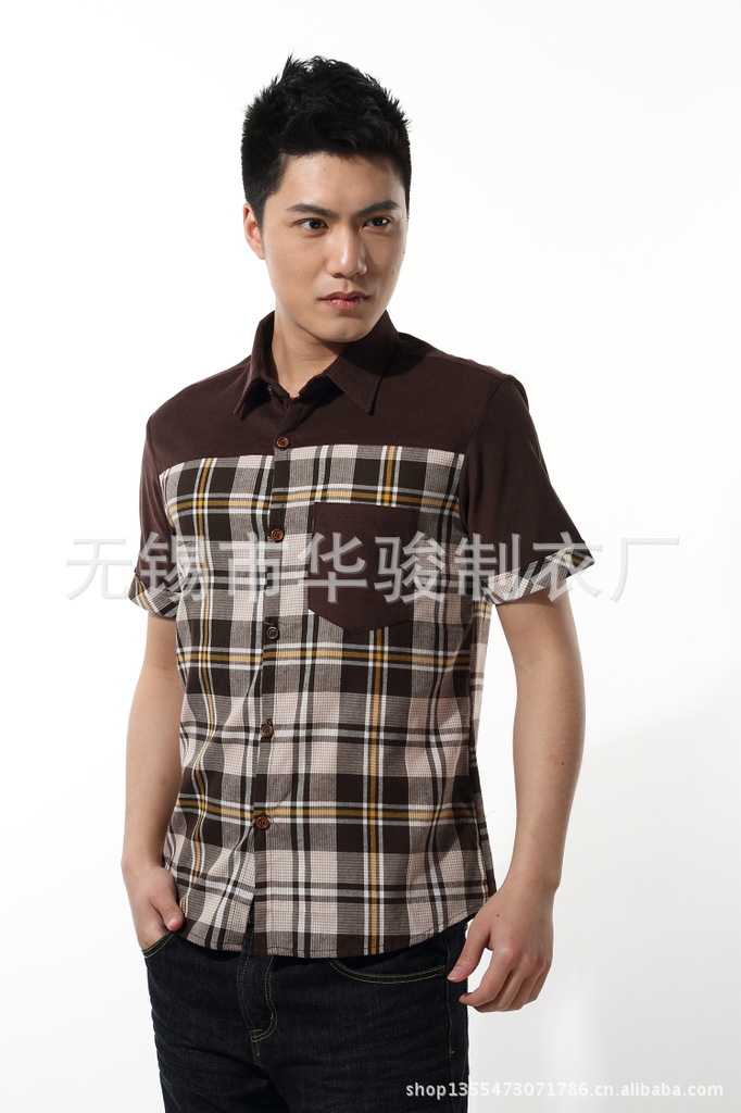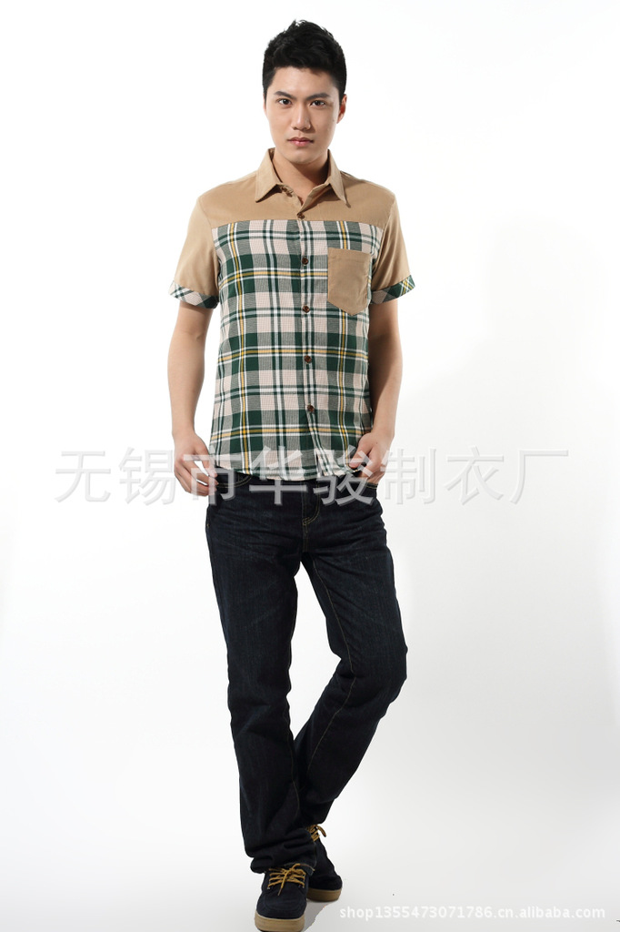 2013精品夏季男裝燈芯絨襯衫男短袖男士格子襯衫韓版修身襯衣