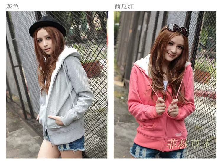 2013秋冬新款女裝休閑加厚大碼加絨保暖連帽衛(wèi)衣開衫外套