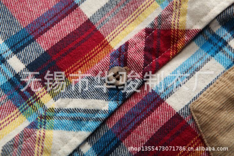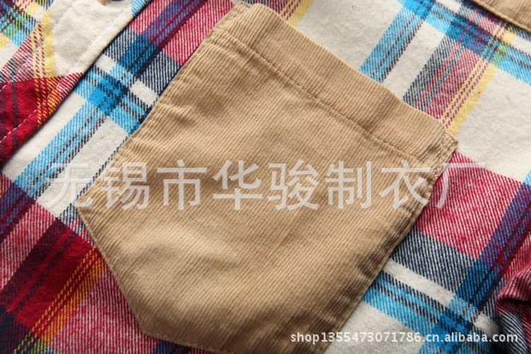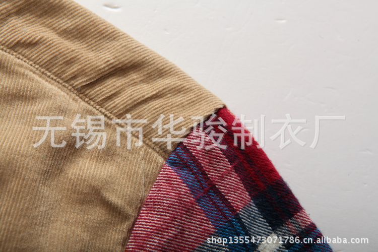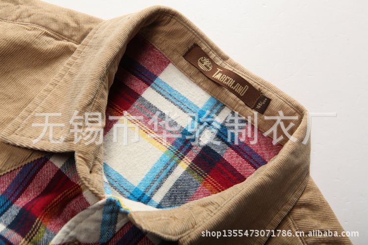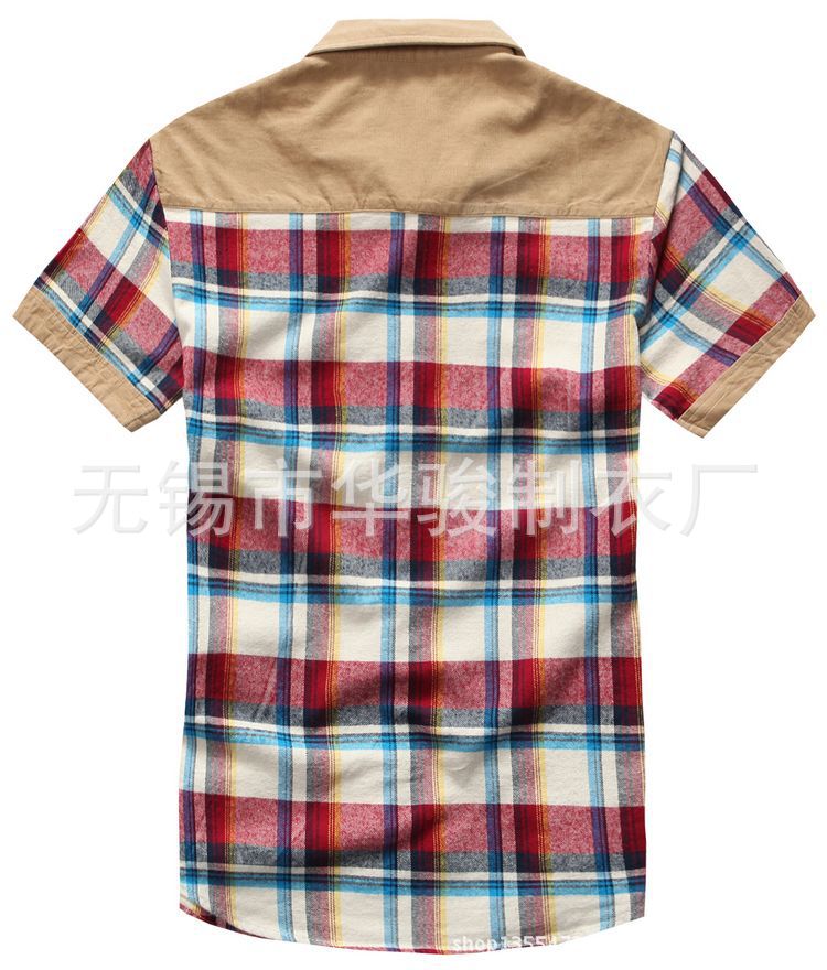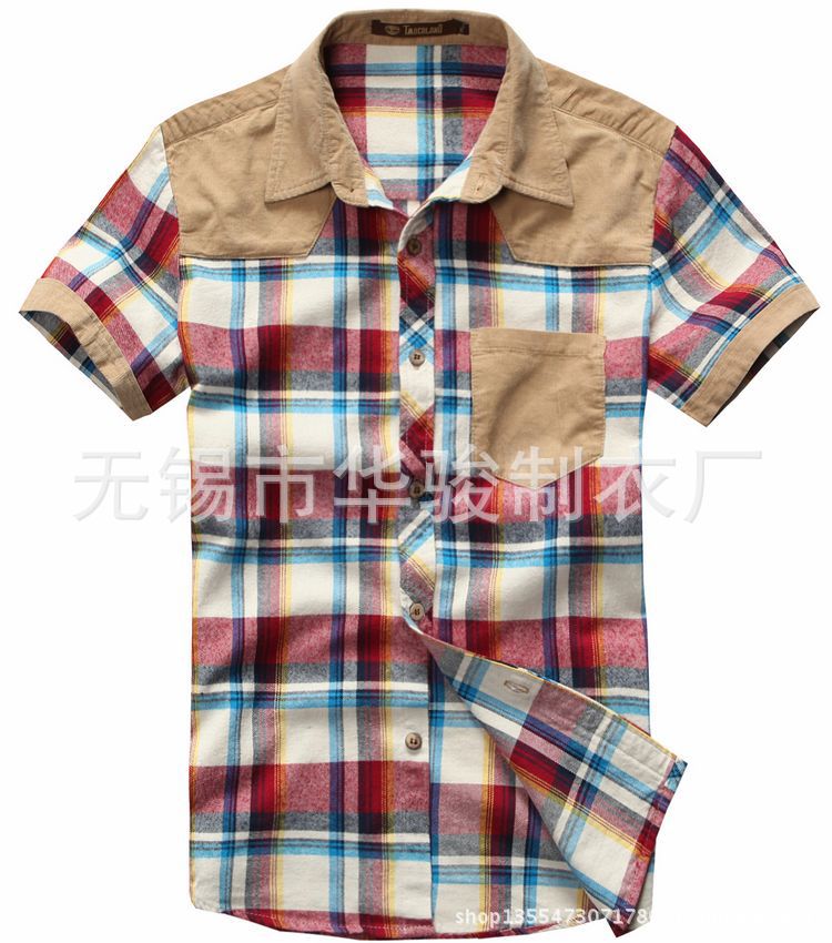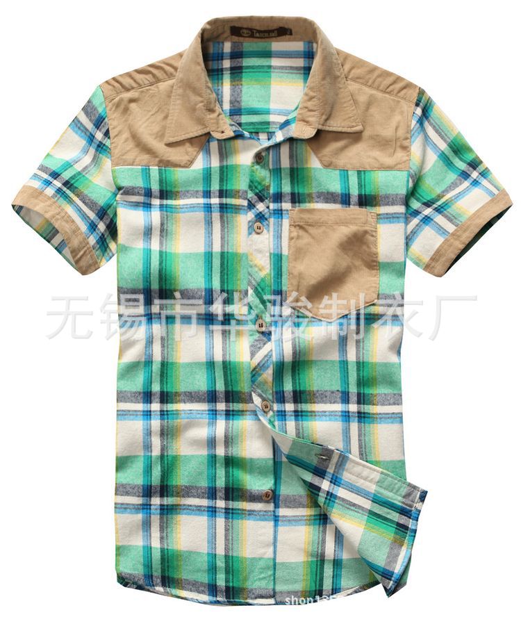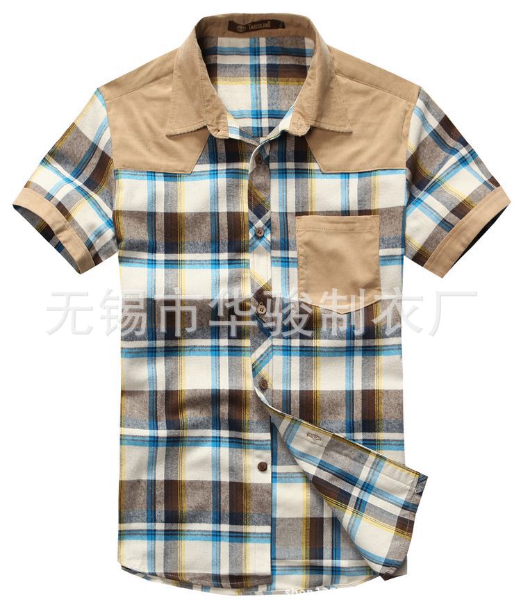 廠家直銷2013夏季新款燈芯絨拼接潮流休閑時(shí)尚格子短袖襯衫 代發(fā)