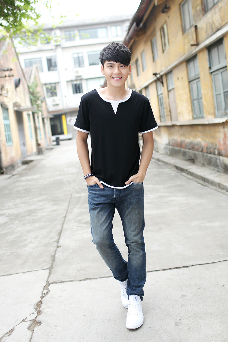 9069# 2015新款情侶裝服夏裝韓版短袖長款商務(wù)翻領(lǐng)男T恤女裝裙子