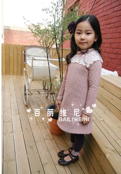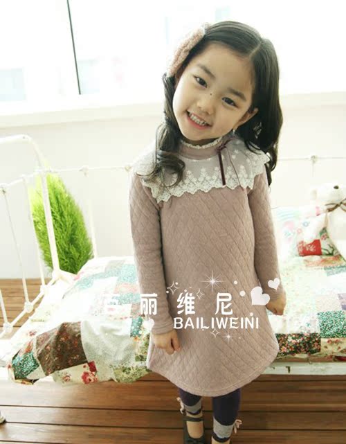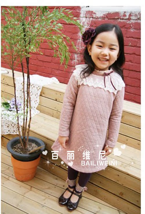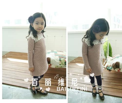 4076 韓版童裝/批發(fā)廠家直銷11冬款新款花邊連衣裙