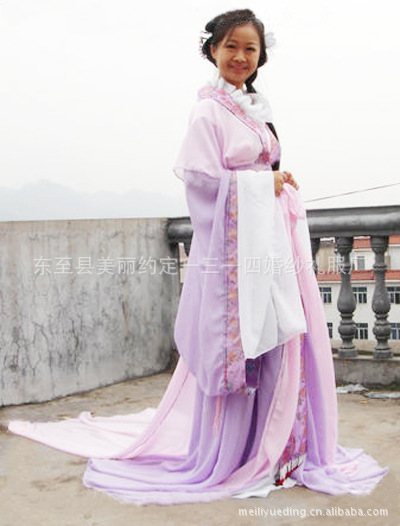 長拖尾 女款 漢服唐裝 淡紫色典雅秀氣女古裝 寫真拍照古裝GT13