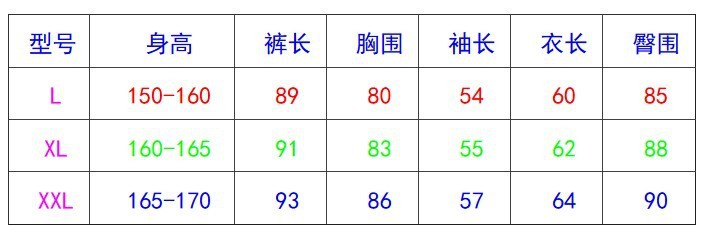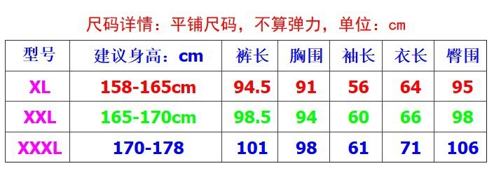 女士L XL XXL 男士XL XXL XXXL