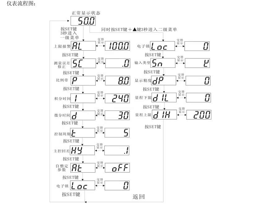 按SET鍵 ▲鍵進入二級菜單,設(shè)置方法同上。