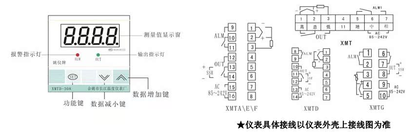 1、儀表面板(參考) 2、儀表接線(參考)