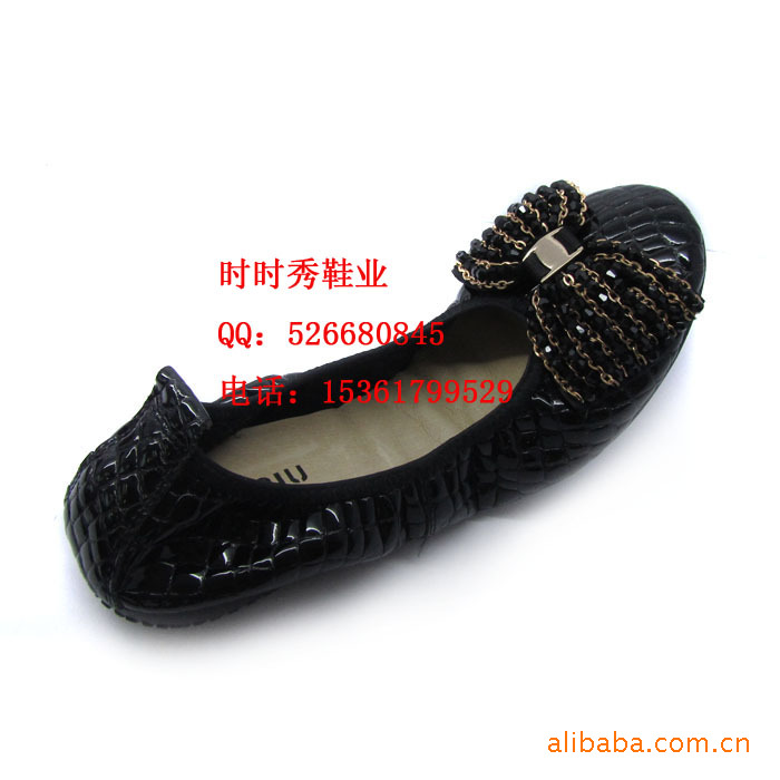 繆繆/miumiu 時(shí)尚 舒適 圓頭 串珠 蝴蝶結(jié) 平底 跳舞鞋 單鞋