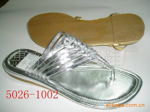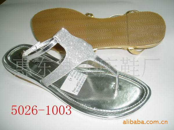 供應(yīng)新款平底涼鞋、人字拖、拖鞋 、亮片 金 銀兩色