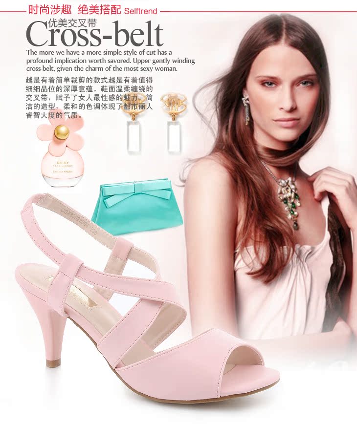 2012女式鞋新品 簡約OL氣質(zhì)高跟鞋交叉編帶中高跟涼鞋子 促銷特價