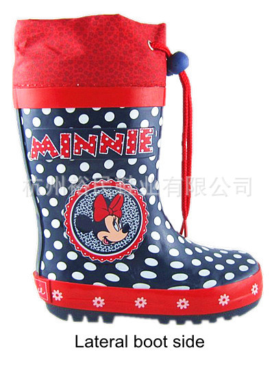 3、大紅色尼龍制筒口布,更好的防止雨水濺入鞋筒內(nèi)。