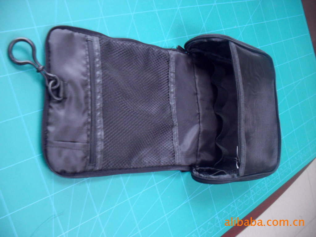 化妝掛包主料為古制尼龍,里袋有210普通里布再加六角網(wǎng)以及6分拉扣,6分橡筋,6分尼龍包邊帶,11號(hào)骨條。價(jià)格為FOB15元一個(gè)