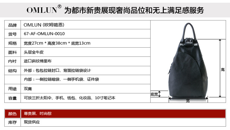 歐姆璐恩OMLUN 花樣倩影2013秋冬日韓新款時尚休閑牛皮雙肩女包