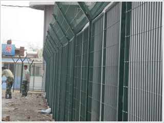 監(jiān)獄護(hù)欄網(wǎng)又稱作“Y型安全防御護(hù)網(wǎng)”,是由V型支架立柱,加強(qiáng)型焊接片網(wǎng),安全防盜連接件和熱鍍鋅刀片刺籠組成強(qiáng)度和安全防御性級(jí)別很高。近年來,被廣泛應(yīng)用在監(jiān)獄,軍事基地等高安全場(chǎng)所。注:如果在監(jiān)獄護(hù)欄網(wǎng)頂部加裝刀片刺絲、刀片刺繩后又很好的增強(qiáng)了安全防護(hù)性能。采用電鍍、熱鍍、噴塑、浸塑等防腐形式,具有很好的抗老化、抗曬、耐候等特點(diǎn)。其產(chǎn)品造型美觀、花色多樣,既起到圍欄作用,又起到美化作用。由于具有安全性高、防攀爬能力好,網(wǎng)片連接方式采用特制SBS緊扣件,有效防止人為的破壞性拆卸,橫向四道折彎加強(qiáng)筋,使網(wǎng)面強(qiáng)度顯著增加。 材質(zhì):優(yōu)質(zhì)低碳鋼絲。 規(guī)格:采用5.0mm高強(qiáng)度低碳鋼絲焊接。 網(wǎng)孔:50mmX100mm,50mmX200mm。 網(wǎng)片中帶有V型加強(qiáng)筋,可大大增強(qiáng)圍網(wǎng)的抗沖擊力。 立柱為60X60的矩形鋼,頂端焊有V型之架。或者采用70mmX100mm的掛式連接立柱。產(chǎn)品均為熱鍍鋅后采用高質(zhì)量的聚酯粉末靜電噴涂,采用國際流行的RAL顏色。 編織方法:編制焊接而成。 連接方式:主要使用M卡,抱卡連接。 表面處理:電鍍、熱鍍、噴塑、浸塑。 優(yōu)點(diǎn):1. 具有美觀、實(shí)用、方便運(yùn)輸和安裝的特點(diǎn)。 2. 要以在在安裝時(shí)地形適應(yīng)地形,與立柱連接位隨地面起伏可上下調(diào)整; 3. 在監(jiān)獄護(hù)欄網(wǎng)的橫向加裝四道折彎加強(qiáng)筋,在整體成本增加不多的同時(shí),使網(wǎng)面強(qiáng)度和美感顯著增加,是目前國內(nèi)外之一。 主要用途:監(jiān)獄、機(jī)場(chǎng)封閉 、私人地域、軍事重地、 場(chǎng)區(qū)圍網(wǎng)、 開發(fā)區(qū)隔離網(wǎng)使用. 制作工藝:預(yù)直絲、裁剪、預(yù)彎、焊接、檢驗(yàn)、置框、破壞性實(shí)驗(yàn)、美化(PE、PVC、熱浸)、包裝、入庫.