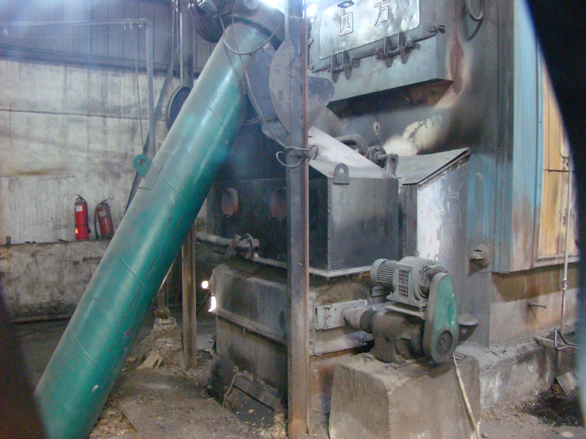 生物質(zhì)鍋爐主要有鍋爐本體、燃燒器、上料機、引風(fēng)機、鼓風(fēng)機、二次配風(fēng)系統(tǒng)、熱水換熱器、電控系統(tǒng)、鍋爐附件等組成。其工作過程是:各種農(nóng)作物秸稈經(jīng)過粉碎壓縮成型后,由上料機送入燃燒器,生物質(zhì)成型燃料在燃燒器內(nèi)經(jīng)熱解反應(yīng)生成可燃氣體,可燃氣體在鍋爐引風(fēng)機的動力作用下進入鍋爐混合燃燒室,在混合燃燒室內(nèi)經(jīng)二次配風(fēng)后形成充分燃燒,燃燒的火焰(溫度可達900度以上)沖刷鍋爐受熱面 ,替代煤做功。同時,氣化后的碳塊在鍋爐爐排作用下進入鍋爐爐膛,在鼓風(fēng)機作用下繼續(xù)燃燒,直至燃盡落入灰室。