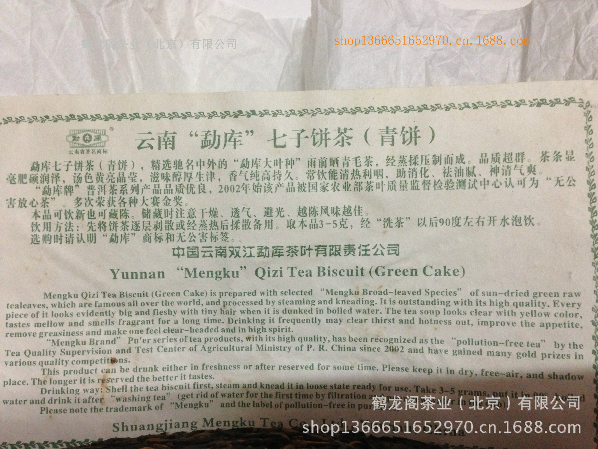 生產(chǎn)商;云南雙江勐庫茶葉有限公司