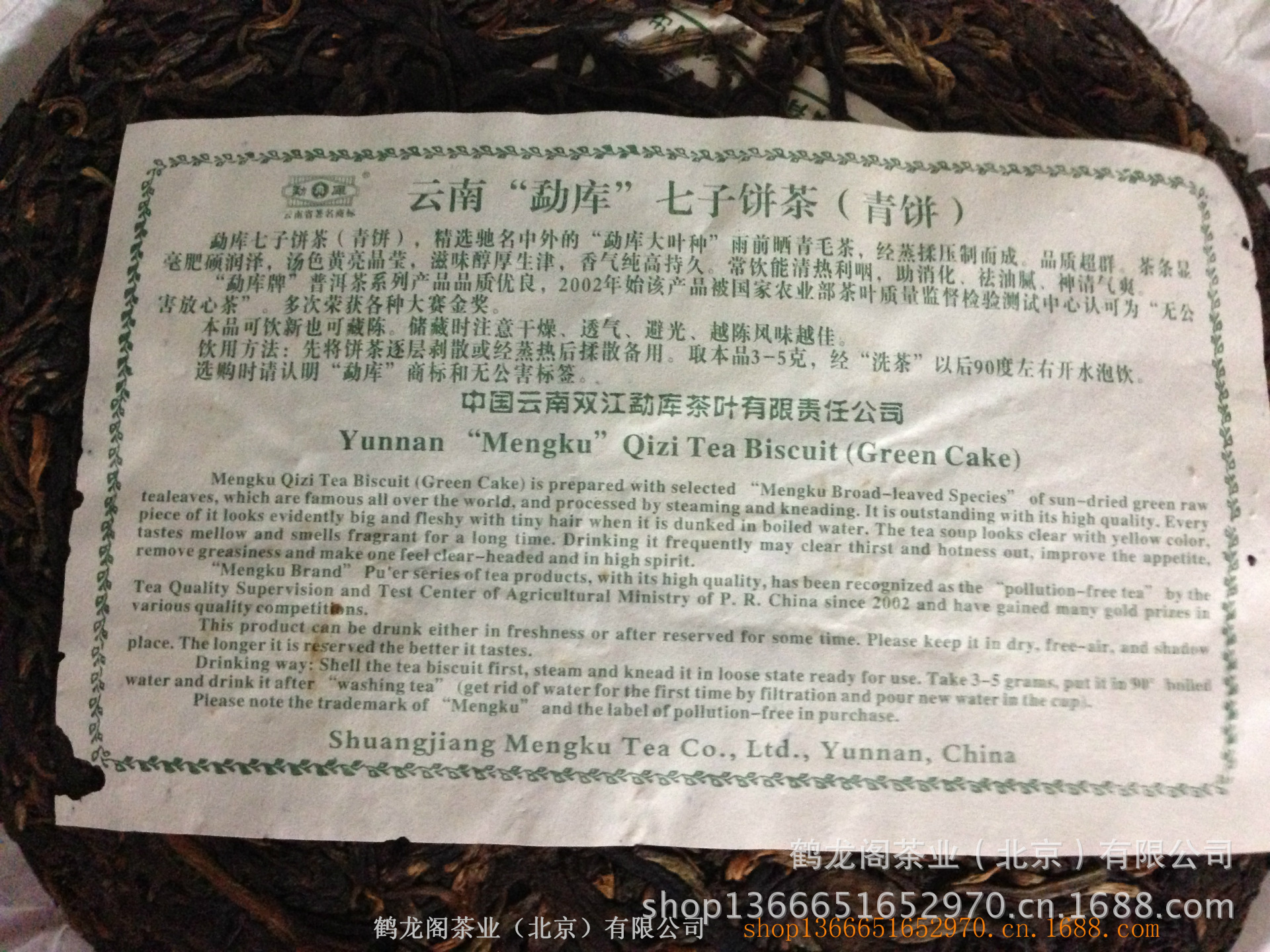 產(chǎn)品名稱;勐庫七子餅普洱茶(生茶)