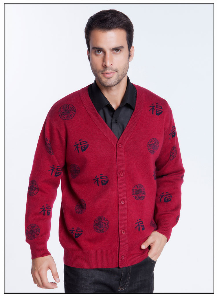 品名】:2013男士福字加厚長(zhǎng)袖羊絨衫 開衫