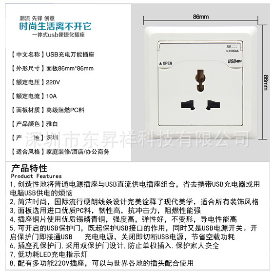 設(shè)計(jì)這款產(chǎn)品的目的,是更加方便現(xiàn)代人的電器化生活?,F(xiàn)在,大量的小型用電設(shè)備,例如手機(jī)、相機(jī)和移動娛樂產(chǎn)品,都是采用USB接口充電,需外接轉(zhuǎn)換器或?qū)嵱锰厥獾某潆娫O(shè)備,而USB充電墻壁插座的應(yīng)用就可省去這些轉(zhuǎn)換設(shè)備,非常符合現(xiàn)代生活需要,讓充電更加輕松方便,可以省去不少麻煩。