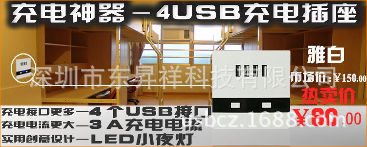 1,創(chuàng)造性地將普通電源插座與USB直流供電插座組合,省去攜帶USB充電器或用電腦USB供電的煩惱。