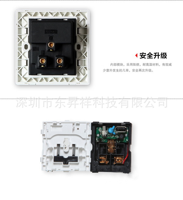6,插座孔保護(hù)門,采用雙保護(hù)門設(shè)計(jì),防止單極插入,保護(hù)家人安全。
