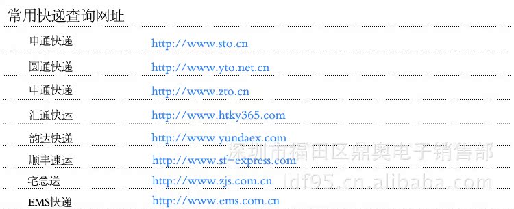 常用物流方式小批量送貨方式:所有商品均以快遞或者郵局方式送到您的府上,您也可以親自至各地快遞點(diǎn)自行領(lǐng)取商品!