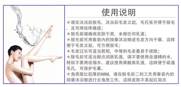 2.一般20天脫毛一次.在洗澡以后,毛孔張開(kāi)時(shí),用質(zhì)量好的脫毛器,脫毛以后還會(huì)注意用一些清柔的乳液滋潤(rùn)皮膚!